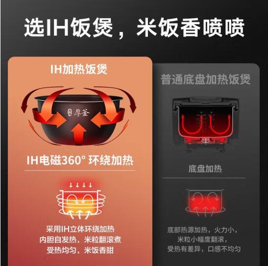 米家 小米电饭煲电饭锅3L压力IH电饭煲1S电磁加热灰铸铁釜涟漪纹胆2-6人多功能家用智能电饭煲