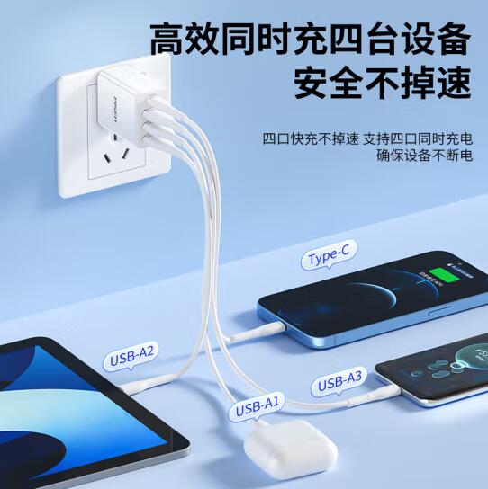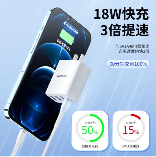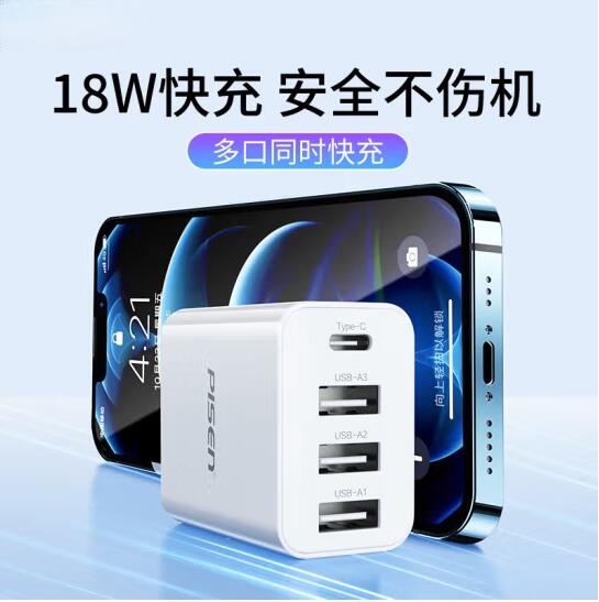 18W充电头3.6A四口USB充电器插头兼容2.4A多口孔快充适用于苹果华为小米三星OPPO安卓手机平板通用装